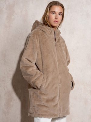 Casaco de pelo curto com capuz