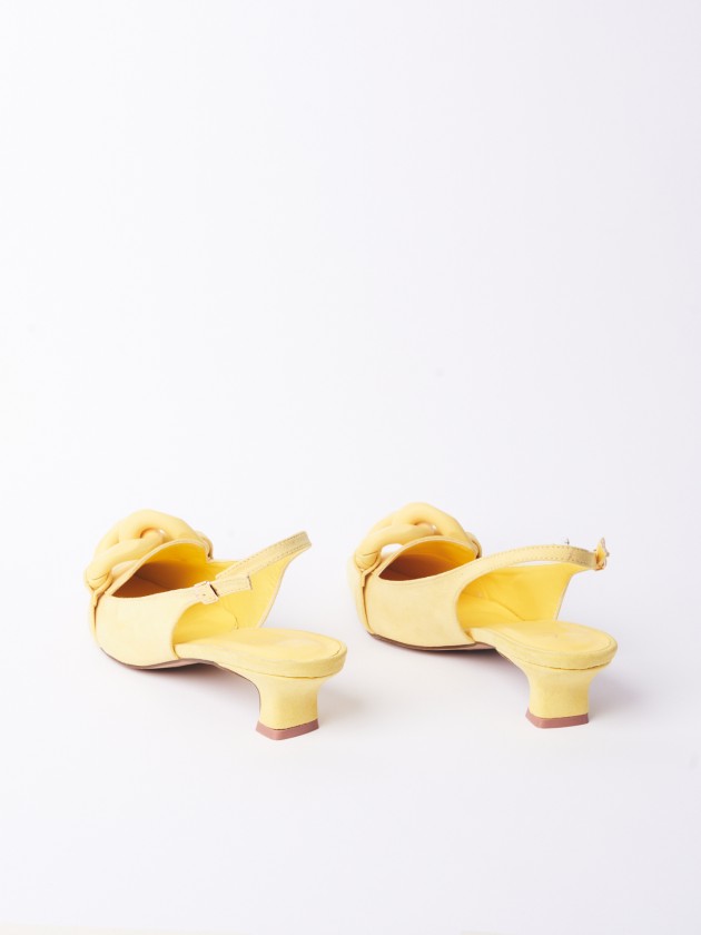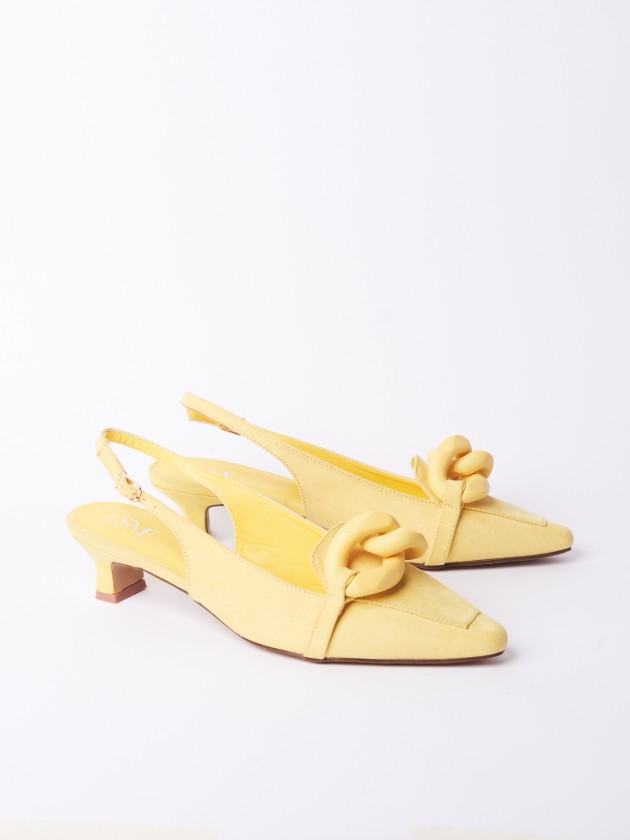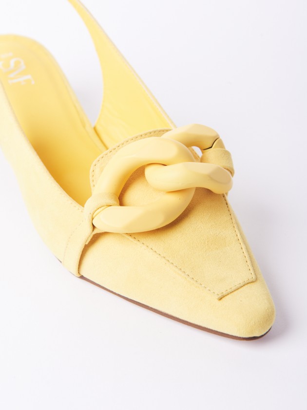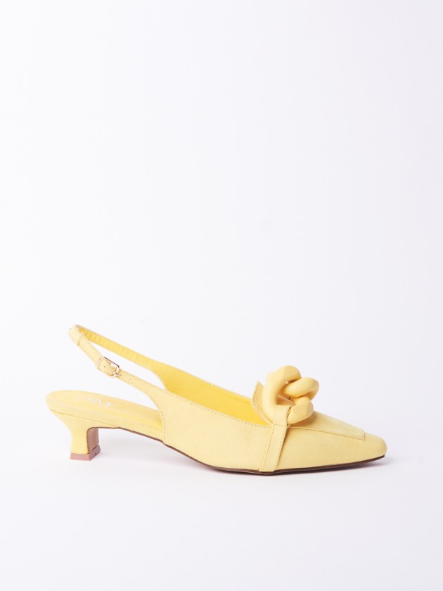 Sandálias com tacão e corrente
