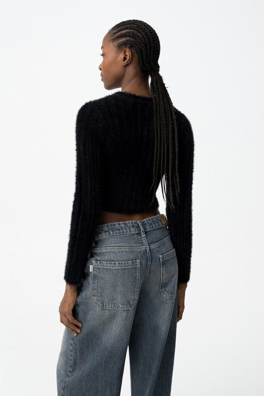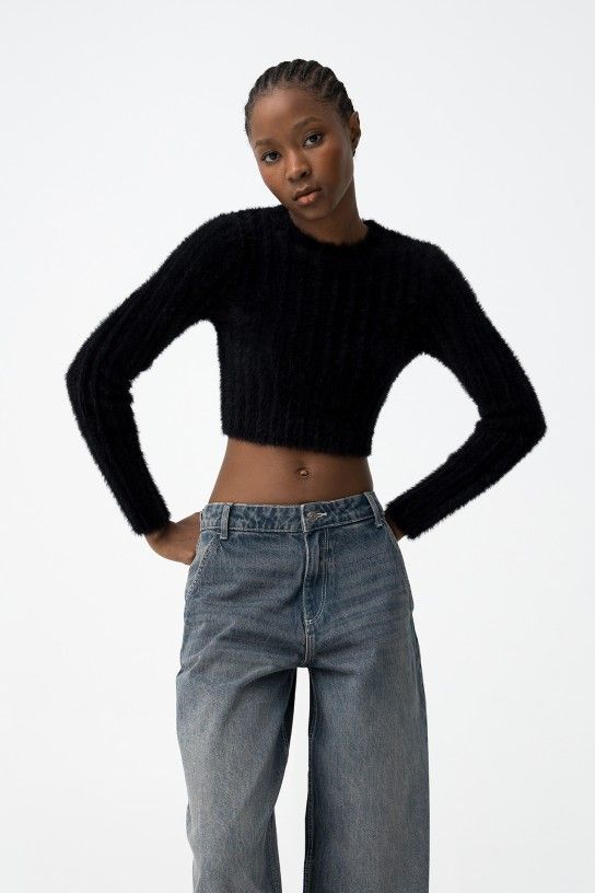 Vestido de manga comprida para menina com punhos elásticos. Gola redonda. Aperta com fecho invisível atrás. Cómodo tecido de malha. Modelo frisado. Elementos decorativos: folhos decorativos. Motivo de quadrados.